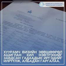 Хуурамч визийн зөвшөөрөл ашиглан хил нэвтрэхийг завдсан гадаадын иргэдийг илрүүлж, албадан гаргалаа