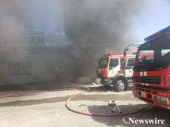 Баянхошууны шинэ буудал, "Миний дэлгүүр"-ийн агуулахад гарч байгаа галыг унтраахаар ажиллаж байна