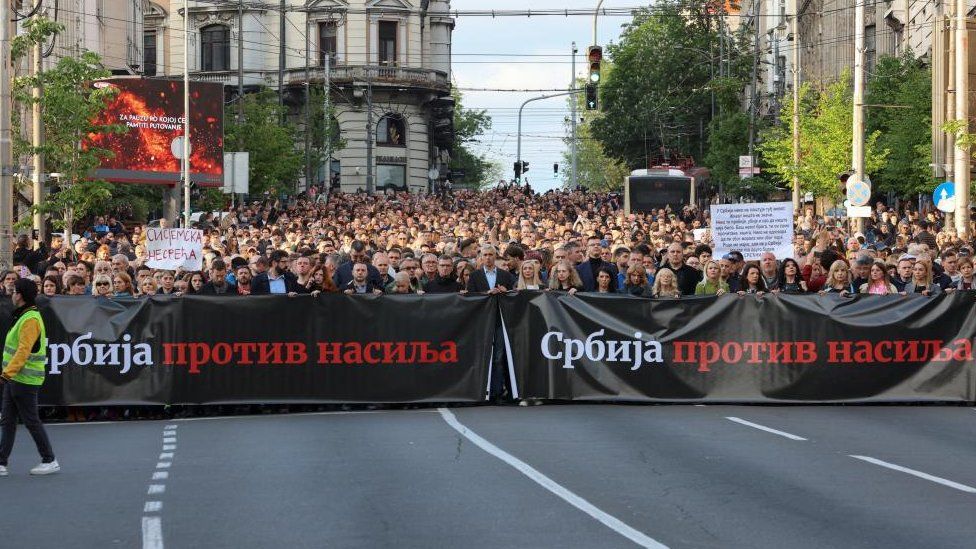 Өнгөрсөн долоо хоногт Сербид хоёр удаа олон хүнийг хамарсан галт зэвсэгтэй халдлага болсны дараа нийслэл Белград болон өөр бусад хотод зэвсэгт хүчирхийллийн эсрэг жагсаал болжээ. Жагсаалд олон арван мянган хүн нэгдсэн байна.