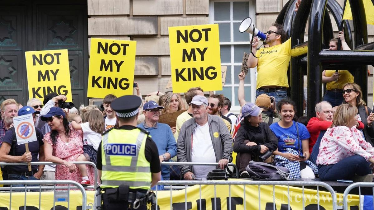 Титэм өргөх ёслолын үеэр хаант засаглалыг эсэргүүцэгчид эсэргүүцлийн жагсаал зохион байгуулж, “Миний хаан биш” гэж чанга дуугаар хашхирч байжээ.