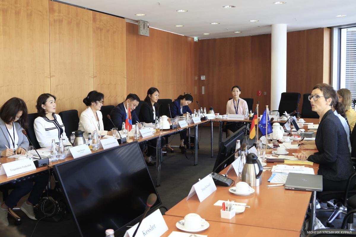 Ерөнхий нарийн бичгийн дарга, дэд дарга нар Бундестагийн болон Улсын Их Хурлын гишүүний халдашгүй байдлын хэрэгжилт, тэдний ажлын албаны төсөв, намын болон намын бүлгийн санхүүжилт, бүрэн эрхийн хугацаа нь дуусгавар болсон гишүүдийн нийгмийн асуудлыг шийдвэрлэх зэрэг олон асуудлыг хөндөн ярилцав. Дэд дарга Рут Ланг Бунтестагийн захиргааны туршлагыг судлахаар ирсэнд нь талархал илэрхийлж, Ерөнхий нарийн бичгийн даргын хөндсөн асуудлуудад тодорхой хариулт өгсөн юм. Ажлын албаа санхүүжүүлэх төсвийг Бундестагийн гишүүдэд тус бүрд нь баталж олгодог бөгөөд тухайн төсвөөрөө хэчнээн хүнийг, хэрхэн ажиллуулахаа гишүүд өөрсдөө шийддэг байна. Түүнчлэн Бундестагийн гишүүн аливаа гэмт хэрэг, зөрчилд холбогдох тохиолдолд гишүүнээс нь түдгэлзүүлэн шалгах боловч шүүхийн шийдвэрээр гэм буруутай нь тогтоогдох хүртэл түүний болон ажилтнуудынх нь цалин хангамж хэвийн үргэлжилдэг аж. Гэм буруутай нь тогтоогдсон тохиолдолд л бүрэн эрхийг нь хүчингүй болгох хуультай бөгөөд Бундестагийн түүхэнд ийм тохиолдол гарч байгаагүй юм байна.