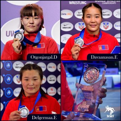 Эмэгтэй шигшээ баг гурван мөнгөн медаль хүртэж, 80 оноо цуглуулж гуравдугаар байрт орсноор Чөлөөт бөхийн дэлхийн цомд өрсөлдөх эрхтэй боллоо.