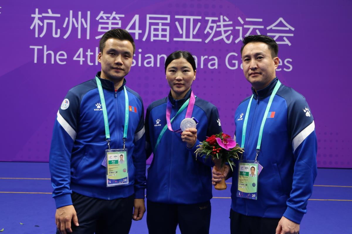 БНХАУ-ын Ханжоу хотод Азийн зуны спортын пара наадам болж байгаа бөгөөд өчигдөр(2023.10.23) таеквондогийн төрөлд дасгалжуулагч Н.Эрдэнэбаатар, Д.Батнасан нарын удирдлага дор тулалдсан Монголын тамирчин У.Сүрэнжав эмэгтэйчүүдийн К-44 ангиллын 52 кг-ын жинд мөнгөн медаль хүртлээ.