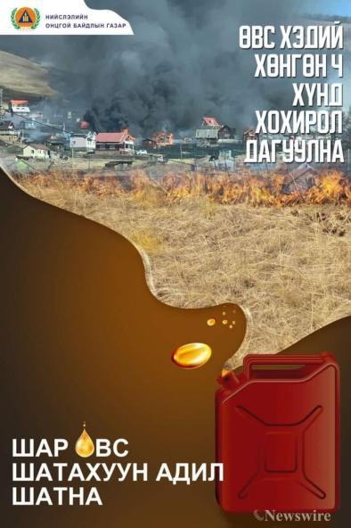 Нийслэлийн ногоон бүс, зуслангийн чиглэлд хуурайшилт ихтэй, түймрийн эрсдэл өндөр байгааг мэргэжлийн байгууллагаас анхааруулж буй. Иймд иргэд та бүхэн ногоон бүсэд зорчихдоо галын аюулгүй байдлыг ханган, ил задгай гал гаргахгүй байх, гэр хороолол, зуслангийн чиглэлд айл өрхүүд хашааны шар өвсийг шатаахгүй, халуун үнс нурмыг таглаатай төмөр саванд хийж галын аюулгүй байдлаа хангахыг Нийслэлийн Онцгой байдлын газраас сэрэмжлүүлж байна.