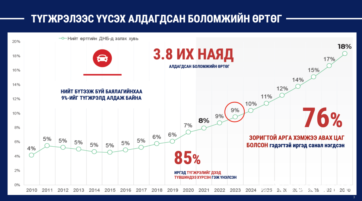 Мөн "Их тойруугийн 50 га газарт сургууль, эмнэлэг, төрийн үйлчилгээ, үзвэр үйлчилгээний газар төвлөрснөөс түгжрэл үүсч байна. Үүнийг задлах шаардлага бий" гэж тодотгов.