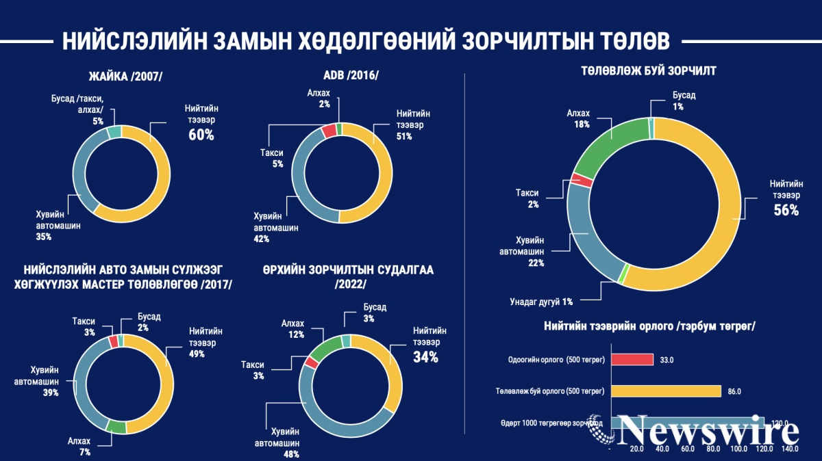 Улаанбаатар хотын авто замын хөдөлгөөний түгжрэлийг бууруулах, гэр хорооллыг орон сууцжуулах тухай анхдагч хуулийн талаар Хотын дарга Х.Нямбаатар мэдээлэл өглөө. Тэрбээр "Хуулийн төсөлд Баруун дөрвөн замаас Зүүн дөрвөн зам, 32-ын тойргоос Энхтайваны гүүр хүртэл төлбөртэй бүс болгохоор тусгасан. Төлбөртэй бүсийн тариф 0-27,000 төгрөг байна. Гэхдээ НИТХ батлах эрхтэй. 2,000, 5,000, 10,000 төгрөг ч байж болно. Төлбөртэй бүс дотор амьдарч байгаа иргэдийг тогтоосон тарифаас 90 хувь хөнгөлнө. Жишээлбэл 1,000 төгрөгөөр төлбөртэй нэвтрэх шийдвэр гарлаа гэхэд 100 төгрөг төлнө гэсэн үг" гэлээ.