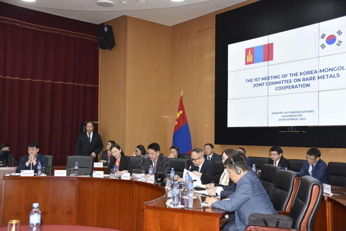 Энэ ажлын хүрээнд Монгол-Солонгосын хамтарсан хорооны анхдугаар хурлыг өнөөдөр ГХЯ-ны Зөвшилцөл танхимд /2023.11.20/ зохион байгууллаа. Хурлаар Монгол орны ховор металлын нөөц, хэтийн төлөв, Монгол Улсын чухал ач холбогдолтой ашигт малтмалын чиглэлээрх хамтарсан төсөл, чухал ашигт малтмалын салбар дах БНСУ, Монгол улсын хоёр талт болон олон талт хамтын ажиллагаа, чухал ашигт малтмалын салбарын БНСУ, МУ-ын R&D хамтын ажиллагааны чиглэл “Ховор металлын хамтын ажиллагааны хамтарсан хороо”-ны үйл ажиллагааг хэлэлцэв.