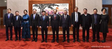 Монгол Улсын Их Хурлын гишүүн, Улсын Их Хурлын Аюулгүй байдал, гадаад бодлогын байнгын хорооны дарга Б.Энх-Амгалан, Улсын Их Хурлын гишүүн, тус Байнгын хорооны гишүүн П.Анужин, Х.Баделхан, Д.Ганбат нар Бүх Хятадын Ардын Төлөөлөгчдийн Их Хурал (БХАТИХ)-ын Гадаад хэргийн хорооны урилгаар Бүгд Найрамдах Хятад Ард Улсад ажлын айлчлал хийж байна.