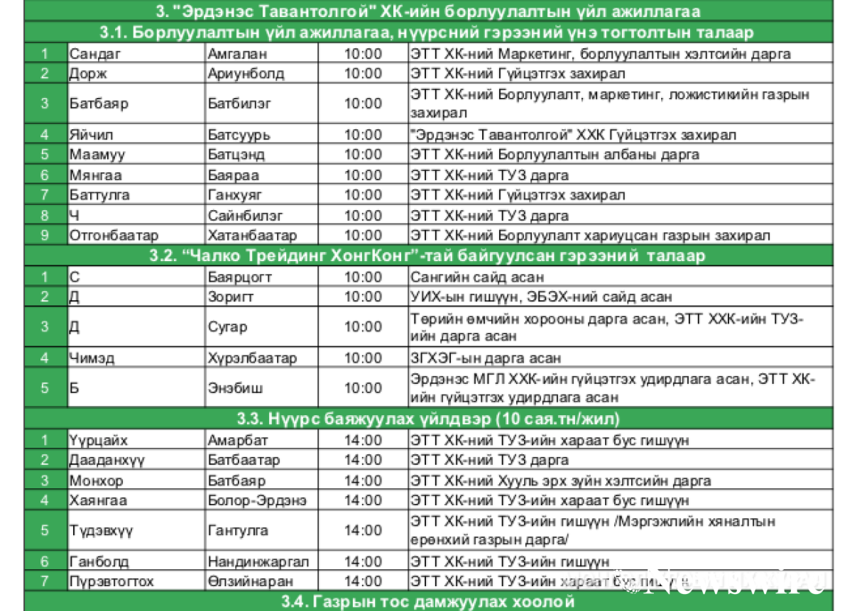 1) Борлуулалтын үйл ажиллагаа, нүүрсний гэрээний үнэ тогтолтын талаар;