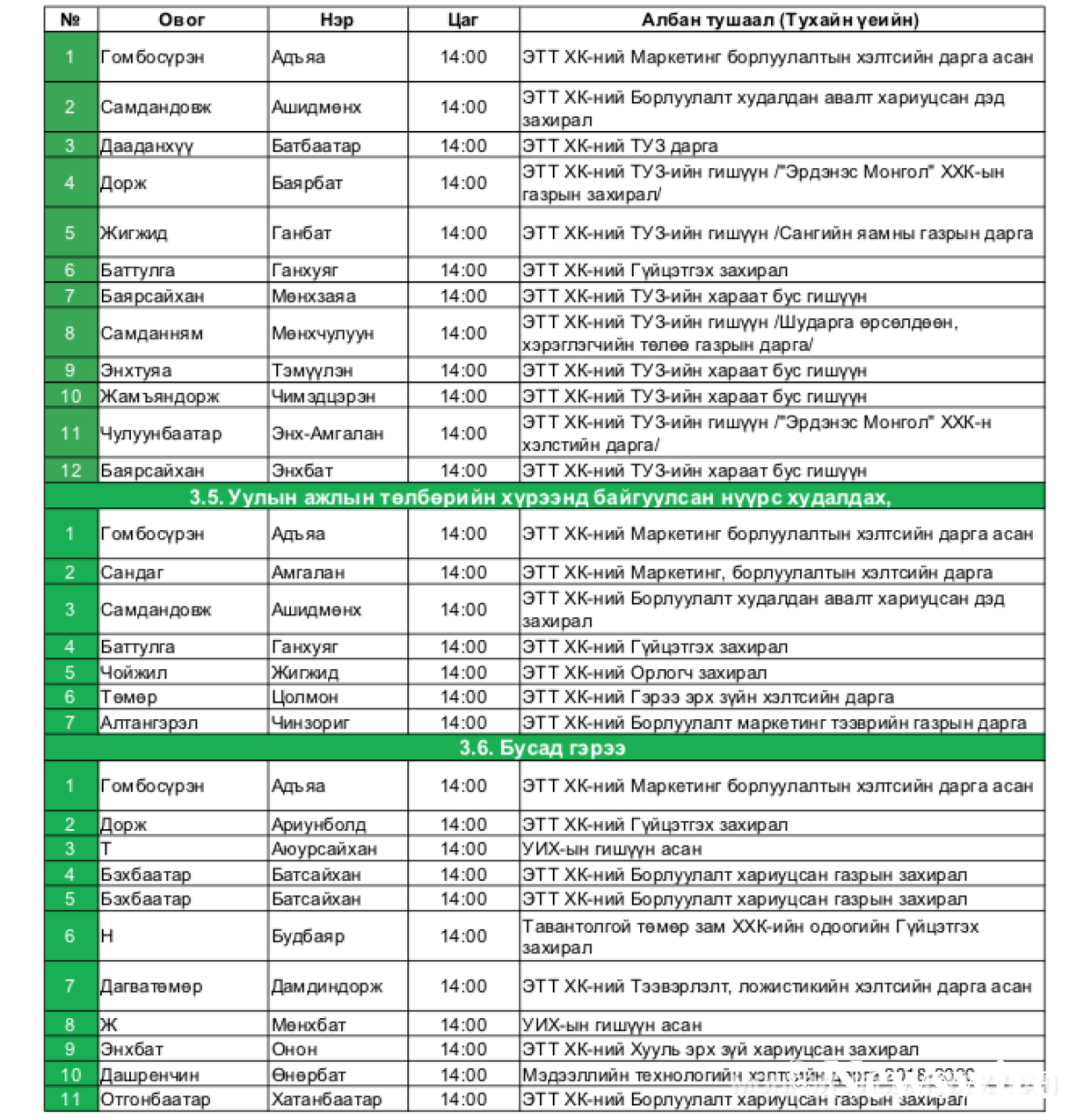 Өнөөдөр “Эрдэнэс Тавантолгой” ХК-ийн борлуулалтын үйл ажиллагаатай холбоотой дараах 6 сэдвээр нотлох баримтыг шинжлэн судлах бөгөөд энэ хүрээнд 51 гэрчийг дуудсан байна. (сонсголын хоёр дахь шатны нийт гэрчүүдийн нэрсийн жагсаалт)