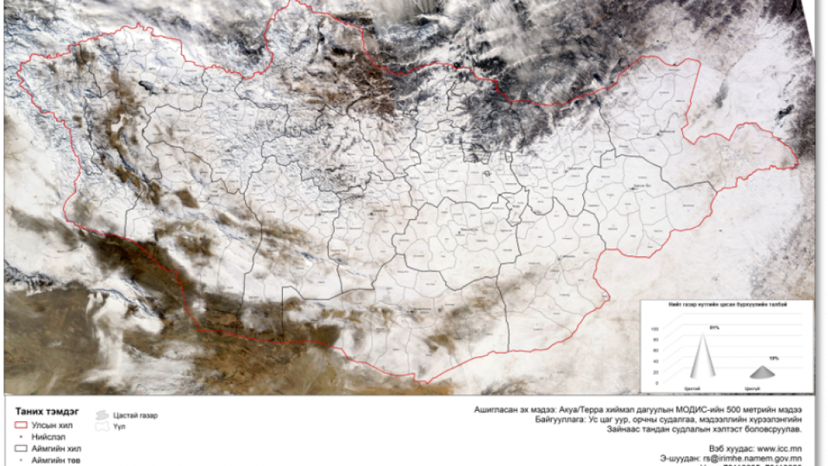 Монгол орны нийт нутгийн 90 хувьд цасан бүрхүүлтэй, 11 аймгийн 41 суманд цагаан зудын, 11 аймгийн 48 суманд цагаанаар зудархуу нөхцөл байдал үүсээд байна.