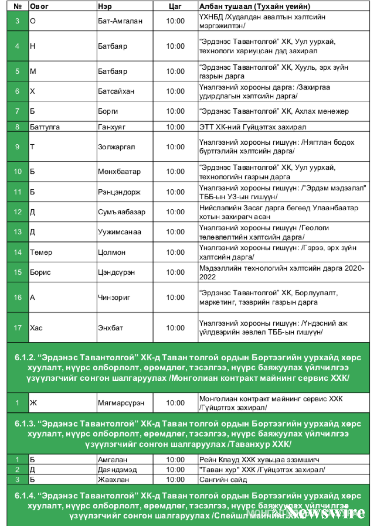 4) “Эрдэнэс Тавантолгой” ХК-д Таван толгой ордын Бортээгийн уурхайд хөрс хуулалт, нүүрс олборлолт, өрөмдлөг, тэсэлгээ, нүүрс баяжуулах үйлчилгээ үзүүлэгчийг сонгон шалгаруулах /Таванхур ХХК/