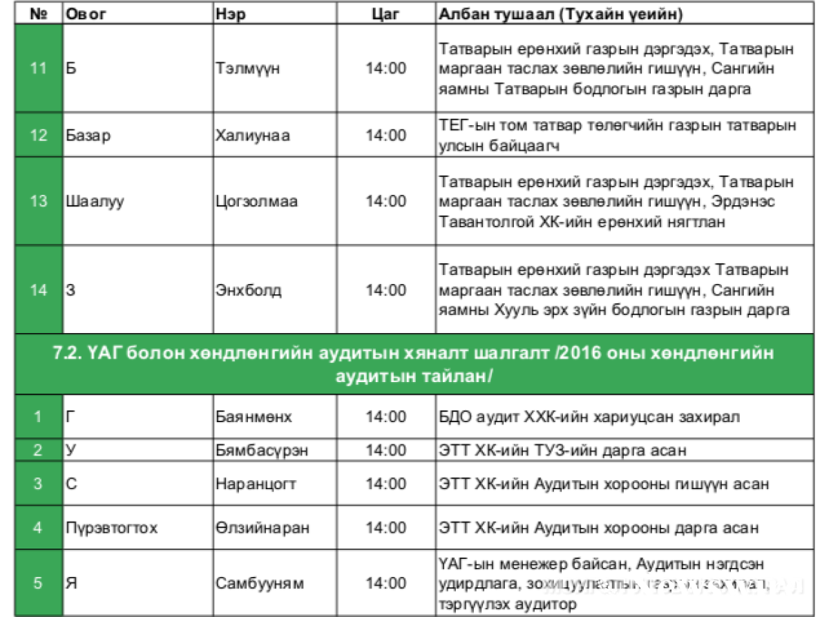 2) ҮАГ болон хөндлөнгийн аудитын хяналт шалгалт