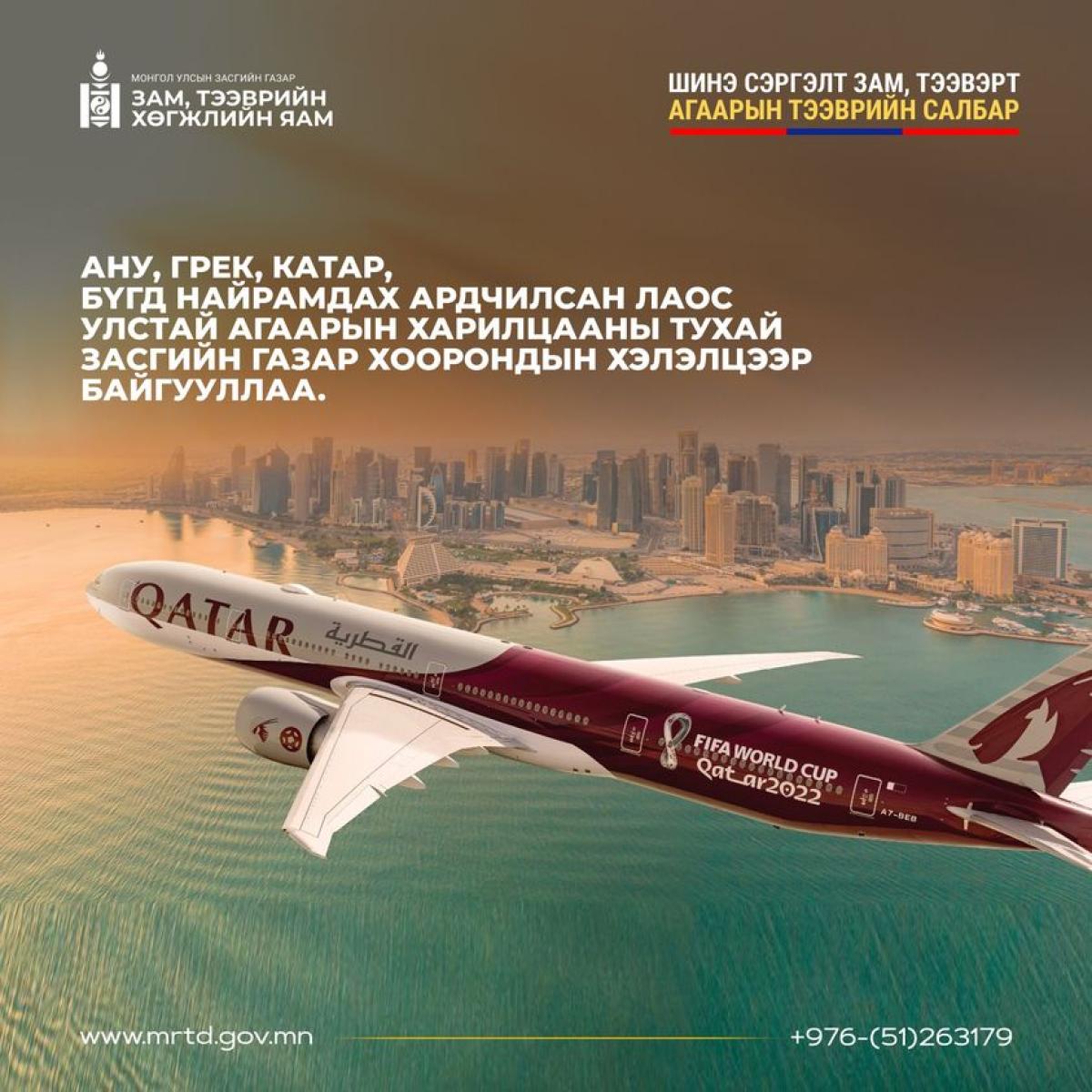 Монгол Улсын Засгийн газрын Шинэ сэргэлтийн бодлого, агаарын тээврийн либералчлалын хүрээнд 2023 онд “Агаарын харилцааны тухай Засгийн газар хоорондын хэлэлцээр"- ийг Америкийн Нэгдсэн Улс, Катар, Грек, Бүгд Найрамдах Ардчилсан Лаос Ард Улстай тус тус байгуулснаар Монгол Улс дэлхийн 42 УЛСЫН 115 ЦЭГ рүү нислэг үйлдэх боломжтой боллоо.