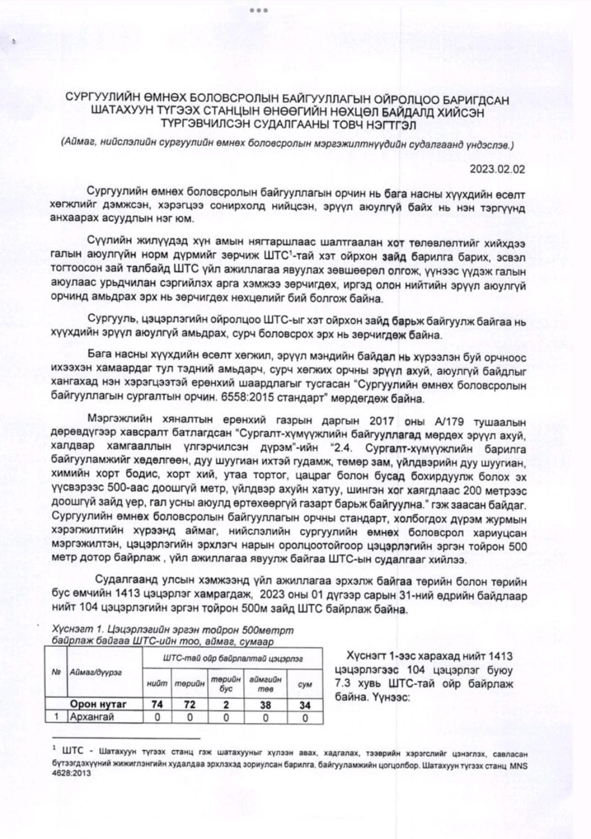 Баянгол дүүрэгт 2, Баянзүрх дүүрэгт 5, Сүхбаатар дүүрэгт 1, Багануур дүүрэгт 2, Хан-Уул дүүрэгт 3, Чингэлтэй дүүрэгт 2, Сонгинохайрхан дүүрэгт 1 байна. Мөн төрийн өмчийн бус 9 сургуулийн 200 метрээс дотогш зайд 9 шатахуун түгээх цэг байрлаж байгаа талаар Боловсрол, Соёл шинжлэх ухааны сайд Л.Энх-Амгалан Онцгой комиссын хурлын үеэр танилцууллаа. Энэ асуудлаар Улсын онцгой комиссоос тусгай ажлын хэсэг байгуулагдахаар болов.