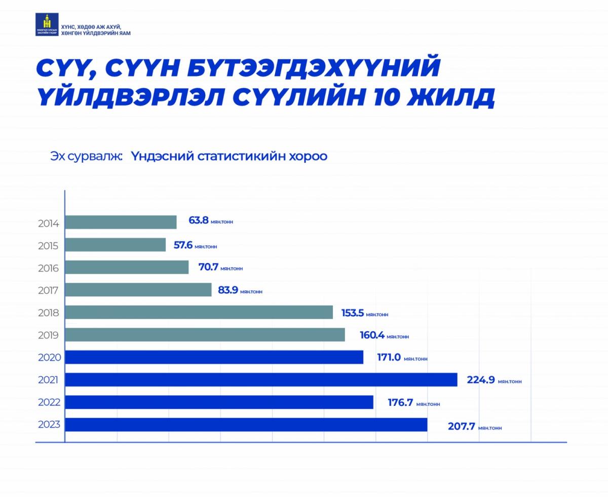 Стратегийн хүнс болох сүү, сүүн бүтээгдэхүүний нийлүүлэлтийн сүүлийн 10 жилийн үзүүлэлтийг харвал: