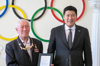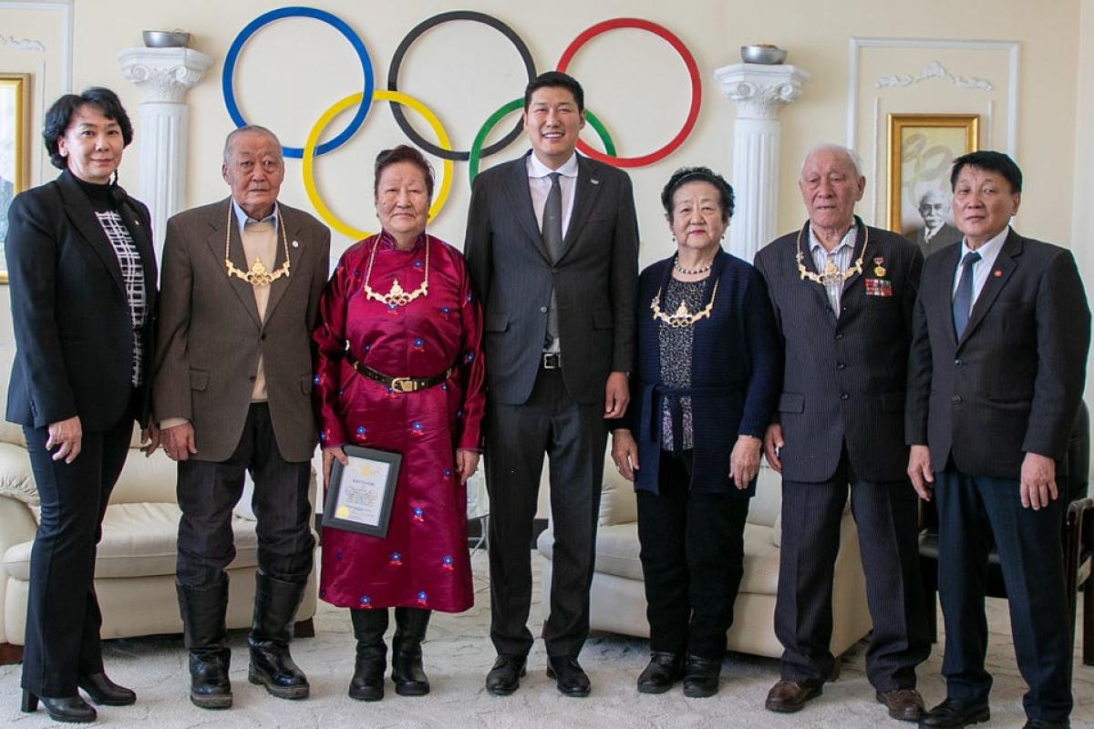 Өнөөдөр ОУОХ-ны Гишүүн, МҮОХ-ны Ерөнхийлөгч Б.Баттүшиг, Тэргүүн дэд ерөнхийлөгч Ч.Наранбаатар, Гүйцэтгэх зөвлөлийн гишүүн П.Буяндэлгэр нар өдгөө энх тунх буй “Инсбрук 1964” Олимпын наадамд оролцогч, ахмад тамирчид, зүтгэлтнүүд Л.Дашдэмбэрэл, Б.Зундуй, Д.Пүрэвлоов, Л.Боль нарыг хүлээн авч хүндэтгэл үзүүлэн, МҮОХ-ны тэргүүн дээд шагнал “Алтан од” одонг гардууллаа.