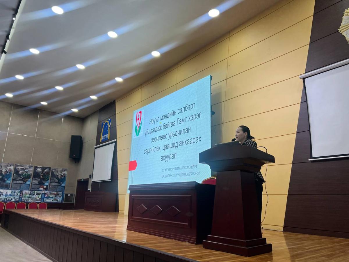 Энэ удаагийн сургалтаар эрүүл мэндийн салбарт гарч болзошгүй гэмт хэрэг, зөрчлөөс урьдчилан сэргийлэх, холбогдох хууль тогтоомжийн талаар мэдээлэл өгч, санал солилцлоо.