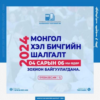 Монгол хэл бичгийн шалгалт 2024 оны дөрөвдүгээр сарын 06-ны өдөр 10:00-11:40 цагт зохион байгуулагдана.