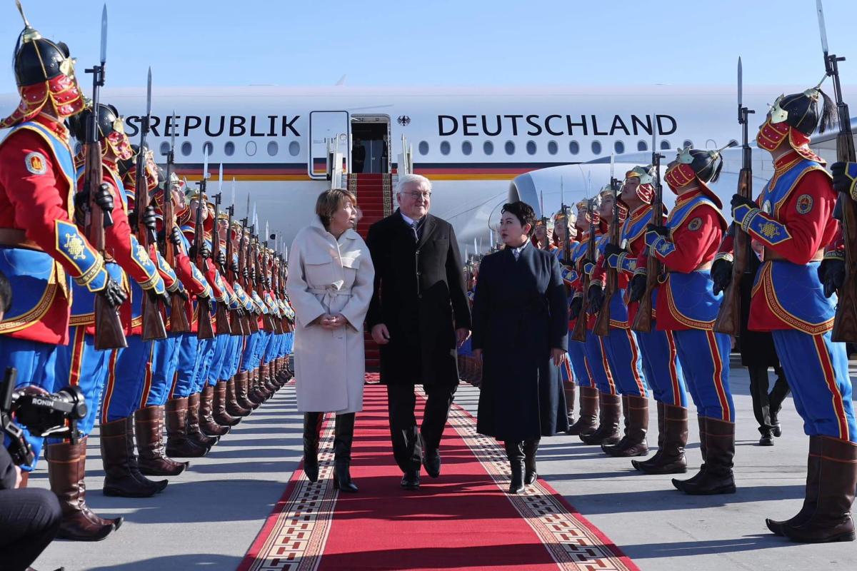Монгол Улсын Ерөнхийлөгч Ухнаагийн Хүрэлсүхийн урилгаар Холбооны Бүгд Найрамдах Герман Улсын Ерөнхийлөгч Франк-Вальтер Штайнмайэр гэргий Элке Бюденбендэрийн хамт Монгол Улсад төрийн айлчлал хийхээр хүрэлцэн ирэв.