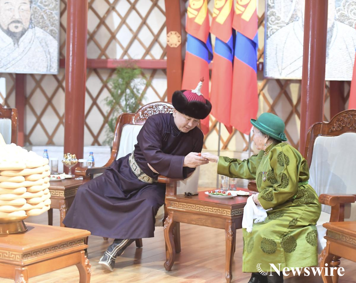 Монгол Улсын Ерөнхийлөгч У.Хүрэлсүх, Улсын Их Хурлын дарга Г.Занданшатар, Ерөнхий сайд Л.Оюун-Эрдэнэ нар ахмад настнуудын амар мэндийг айлтган золгов.