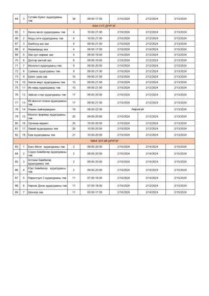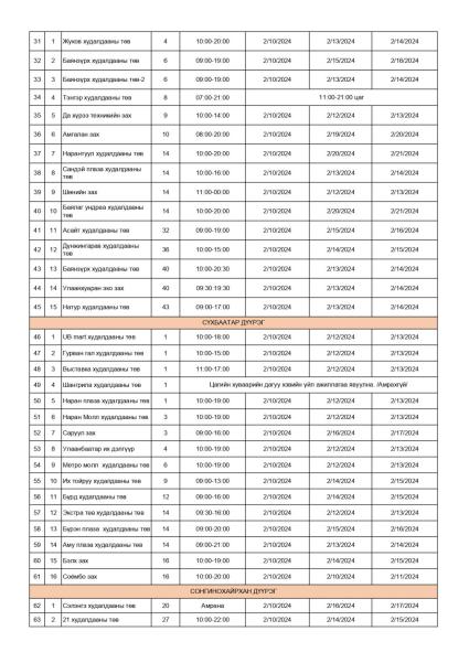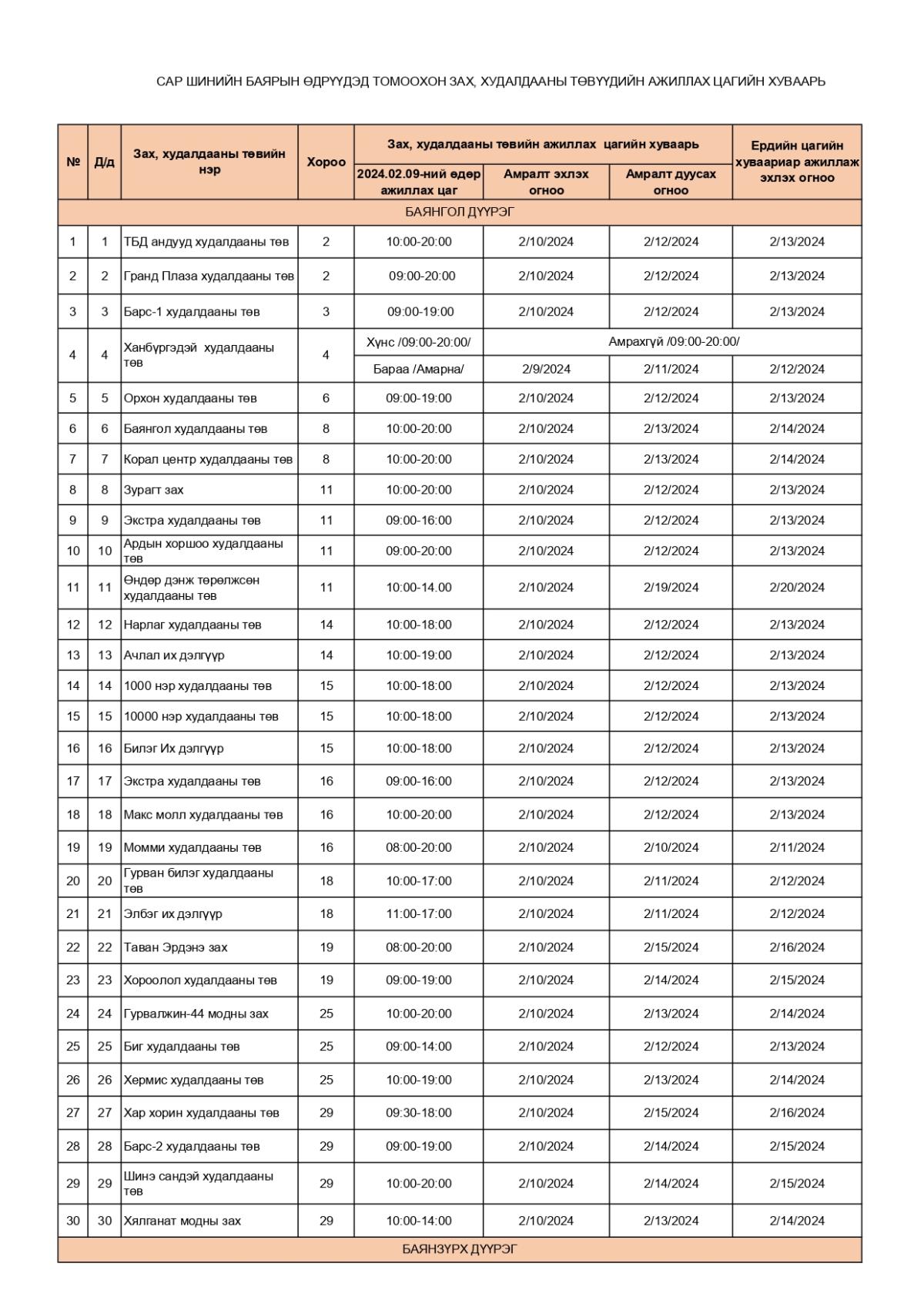 #онцолсон, #УБЗАА, #худалдааны төвүүдийн ажиллах хуваарь,