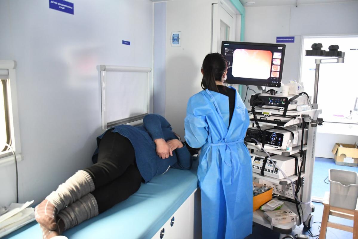 Нүүдлийн эмнэлгийн зориулалтаар иж бүрэн тоноглосон хоёр автомашины нэгд нь лабораторийн шинжилгээ, дурангийн оношилгоо, эмэгтэйчүүдийн үзлэг хийж буй бөгөөд хоёр дахь машинд рентген оношилгооны иж бүрэн тоног төхөөрөмж, шүд, чих хамар хоолой, нүд, дотрын эмчийн үзлэг хийж байна.