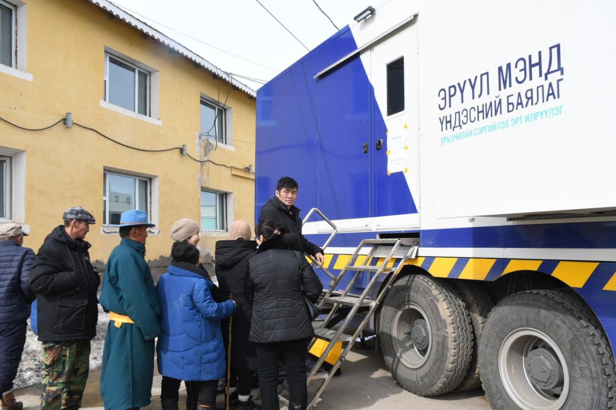 Батсүмбэр суманд очсон эмч нарын баг Азийн хөгжлийн банк, Ядуурлыг бууруулах Японы сангийн буцалтгүй тусламжаар хэрэгжиж буй “Цар тахлын эсрэг шуурхай арга хэмжээ авах эрүүл мэндийн тогтолцооны чадавхыг бэхжүүлэх” МОН-9218 төслийн хүрээнд Монгол Улсад явуулын үзлэг, оношилгоо, шинжилгээ хийх иж бүрэн тоноглогдсон нүүдлийн амбулаториар үзлэг оношлогоо хийж буй юм.