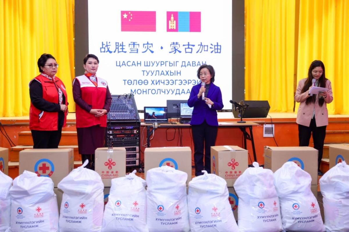 Уг тусламжийн эхний ээлж болох 500 өрхөд малын эрдэс тэжээлийн багц, хүнсний багц, дулаан хувцас хэрэгсэл, бэлэн мөнгөний тусламжийг Гадаад харилцааны сайд, МУЗН-ийн ерөнхийлөгч Б.Батцэцэг, БНХАУ-аас Монгол Улсад суугаа Элчин сайд Шэнь Миньжюан, МУЗН-ийн Ерөнхий нарийн бичгийн дарга Н.Болормаа нар өнөөдөр Төв аймгийн Эрдэнэ сумын нутгийн захиргааны удирдлагууд болон тус сумын малчдад хүлээлгэн өглөө.
