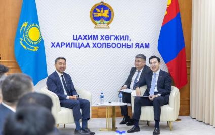 Цахим хөгжил, харилцааны холбооны сайд Н.Учралын урилгаар Бүгд Найрамдах Казахстан Улсын Цахим хөгжил, инновац, сансрын аж үйлдвэрийн тэргүүн дэд сайд Төлеушин Каныш тэргүүтэй төлөөлөгчид Монгол Улсад 2024 оны 4 дүгээр сарын 29-нөөс 5 дугаар сарын 02-ны хооронд ажлын айлчлал хийж байна.