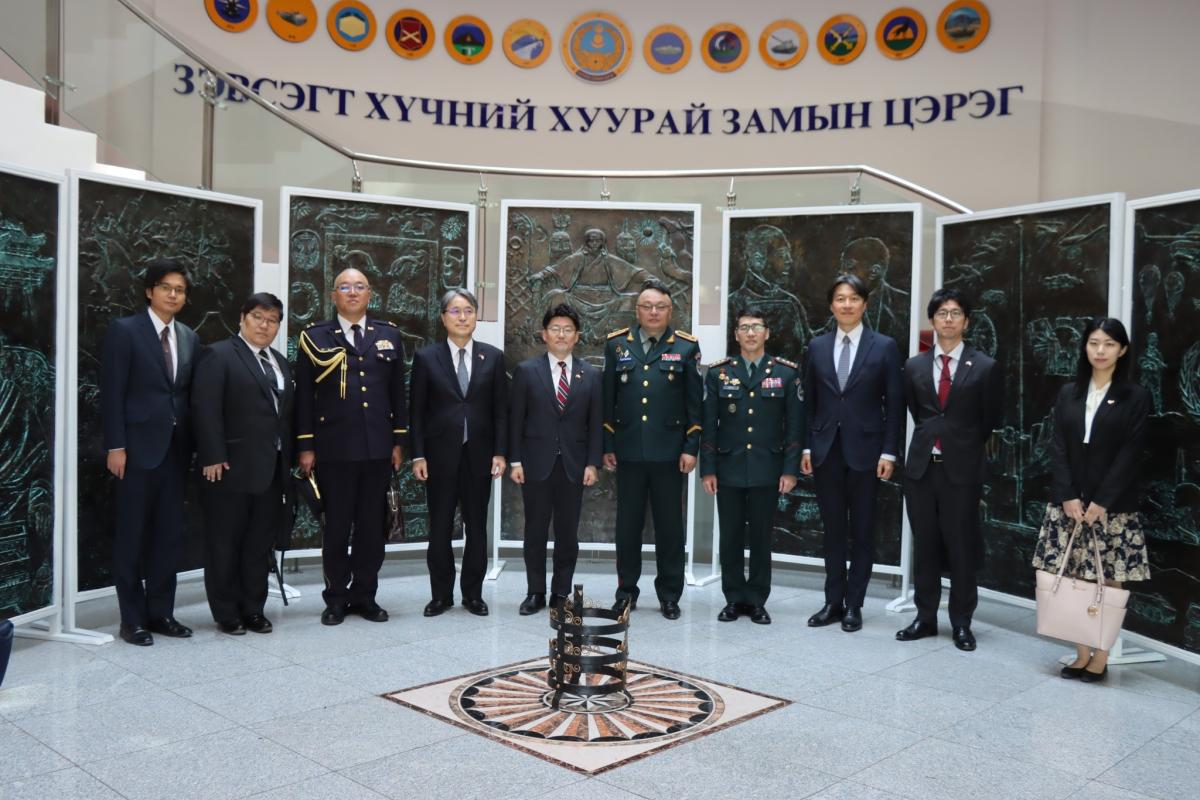 Албан уулзалтын төгсгөлд Япон Улсын Батлан хамгаалахын дэд сайд Макото Оники Монгол Улсын Зэвсэгт хүчний Хуурай замын цэргийн үйл ажиллагаатай танилцаж, дурсгалын зураг татууллаа.