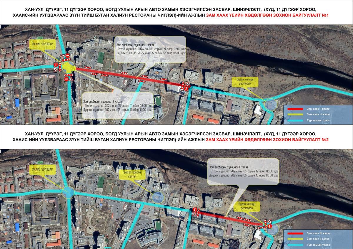 2024 оны 05 сарын 11-ний өдрийн 16:00 цагийн хооронд хааж авто замын засвар, шинэчлэлтийн ажлыг хийж гүйцэтгэнэ.