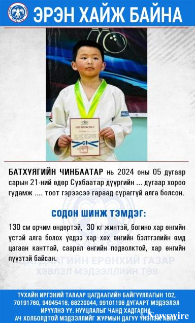 Тавдугаар сарын 21-нд гэрээсээ гараад сураггүй болсон хүүхдийг ЭРЭН ХАЙЖ БАЙНА.