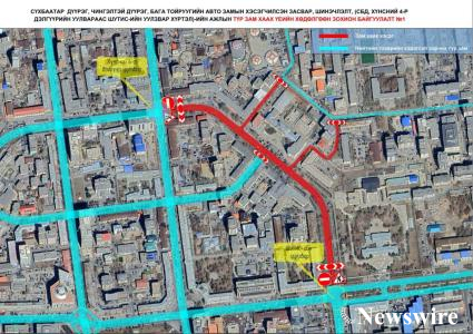 Сүхбаатар дүүрэг болон Чингэлтэй дүүргийн нутаг дэвсгэр, Хүнсний 4 дүгээр дэлгүүрийн уулзвараас ШУТИС-ийн уулзвар хүртэлх авто замыг тавдугаар сарын 28-ны 04:00 цагаас тавдугаар сарын 30-ны өдрийн 06:00 цагийн хооронд хааж, шинэчилнэ.