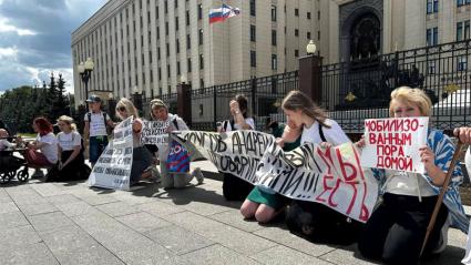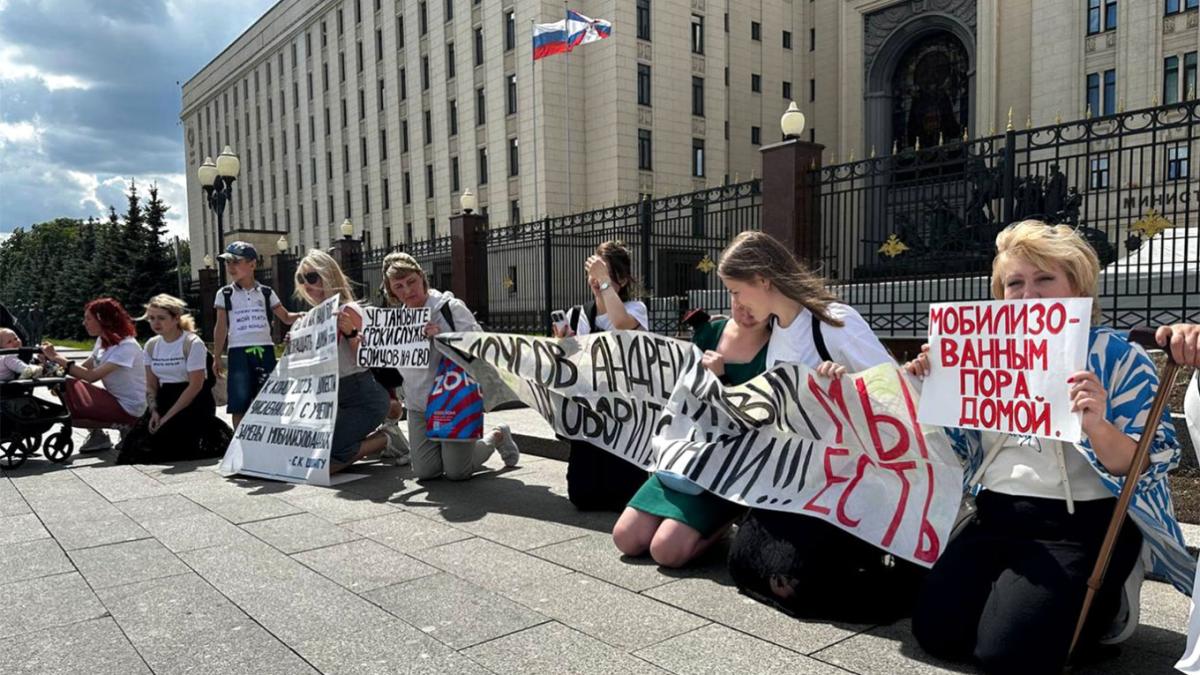 Украинд байлдахаар татагдсан ойр дотны хүмүүсээ нутаг буцаах, мөн Батлан хамгаалахын шинэ сайд Андрей Белоусовтой уулзахыг шаардсан эмэгтэйчүүд даваа гарагт Москва дахь Оросын Батлан хамгаалах яамны байрны гадаа жагсаал зохион байгуулжээ.