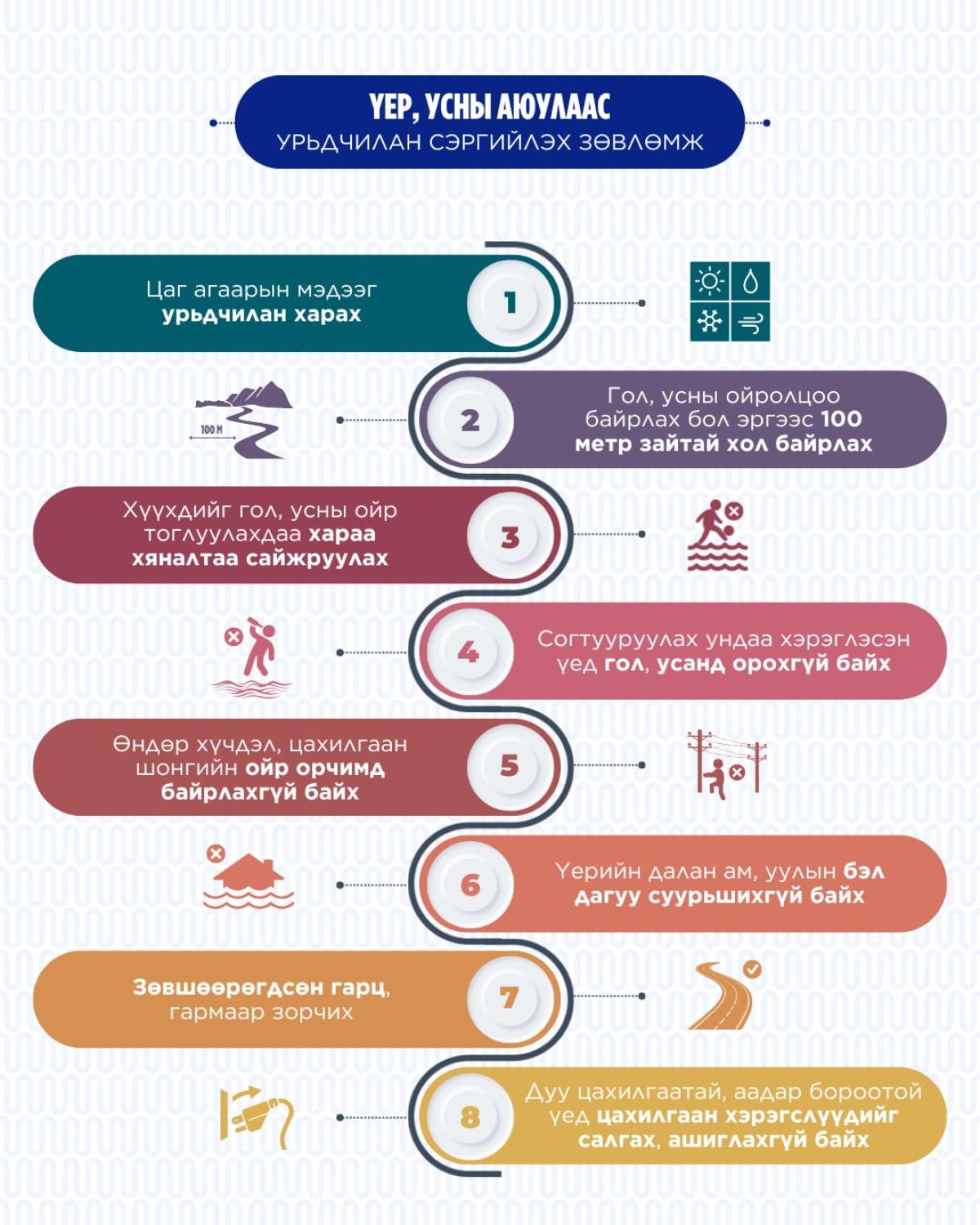 Үер, усны аюулаас урьдчилан сэргийлэх зөвлөмжийг хүргэж байна.