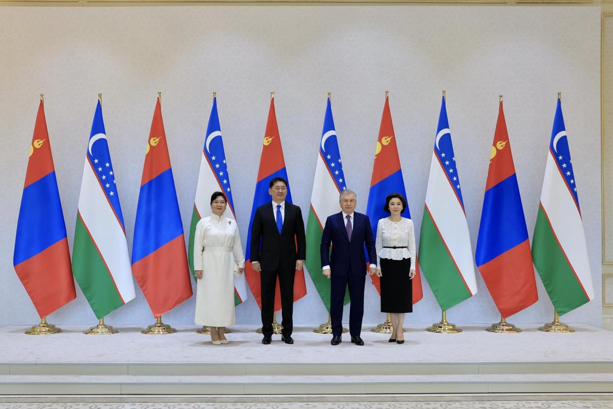 Дараа нь Монгол Улсын Ерөнхийлөгч У.Хүрэлсүх, гэргий Л.Болорцэцэг, Узбекистан Улсын Ерөнхийлөгч Ш.Мирзиёев, гэргий З.Мирзиёева нар дурсгалын гэрэл зураг авахууллаа.