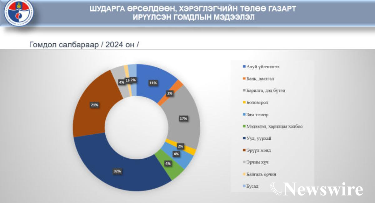 Ирүүлсэн гомдлын 32% уул уурхай, 21% эрүүл мэнд, 17% барилга, дэд бүтцийн салбараас зарласан тендерийн гомдол эзэлж байна. Нийт ирүүлсэн гомдлын дийлэнх буюу 58,4% нь захиалагч тал тендерийн баримт бичиг боловсруулахдаа холбогдох хууль, журмыг зөрчсөн бол өнөөдрийн байдлаар 7 тендерийг түдгэлзүүлэн хянаж байна.
