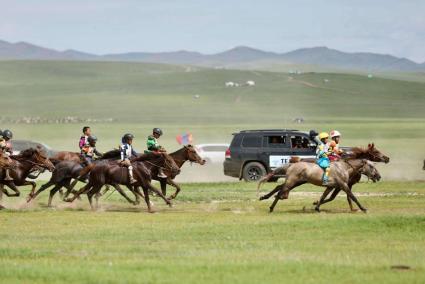 Монгол Улсын Ерөнхийлөгч Ухнаагийн Хүрэлсүх, Улсын Их Хурлын дарга Дашзэгвийн Амарбаясгалан, Монгол Улсын Ерөнхий сайд Лувсаннамсрайн Оюун-Эрдэнэ нар өнөөдөр Хүй долоон худагт хурдан соёолонгийн уралдаан үзэж сонирхлоо.