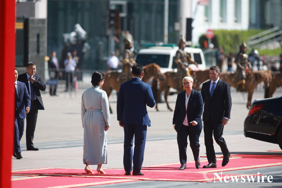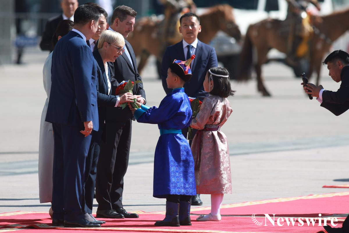 Монгол Улсын Ерөнхийлөгч У.Хүрэлсүх гэргий Л.Болорцэцэгийн хамт Бүгд Найрамдах Словени Улсын Ерөнхийлөгч Наташа Пирц Мусар, нөхөр Алеш Мусар нарыг албан ёсоор угтан авах ёслол Сүхбаатарын талбайд боллоо.