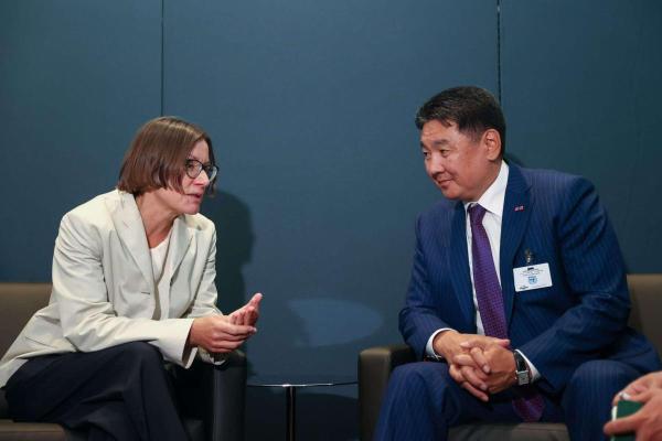 НҮБ-ын Ерөнхий Ассамблейн 79 дүгээр чуулганд оролцож буй Монгол Улсын Ерөнхийлөгч Ухнаагийн Хүрэлсүх 2024 оны 09 дүгээр сарын 24-ний өдөр Олон улсын улаан загалмай хороо (ОУУЗХ)-ны Ерөнхийлөгч Мирьяана Эггерийг хүлээн авч уулзлаа.