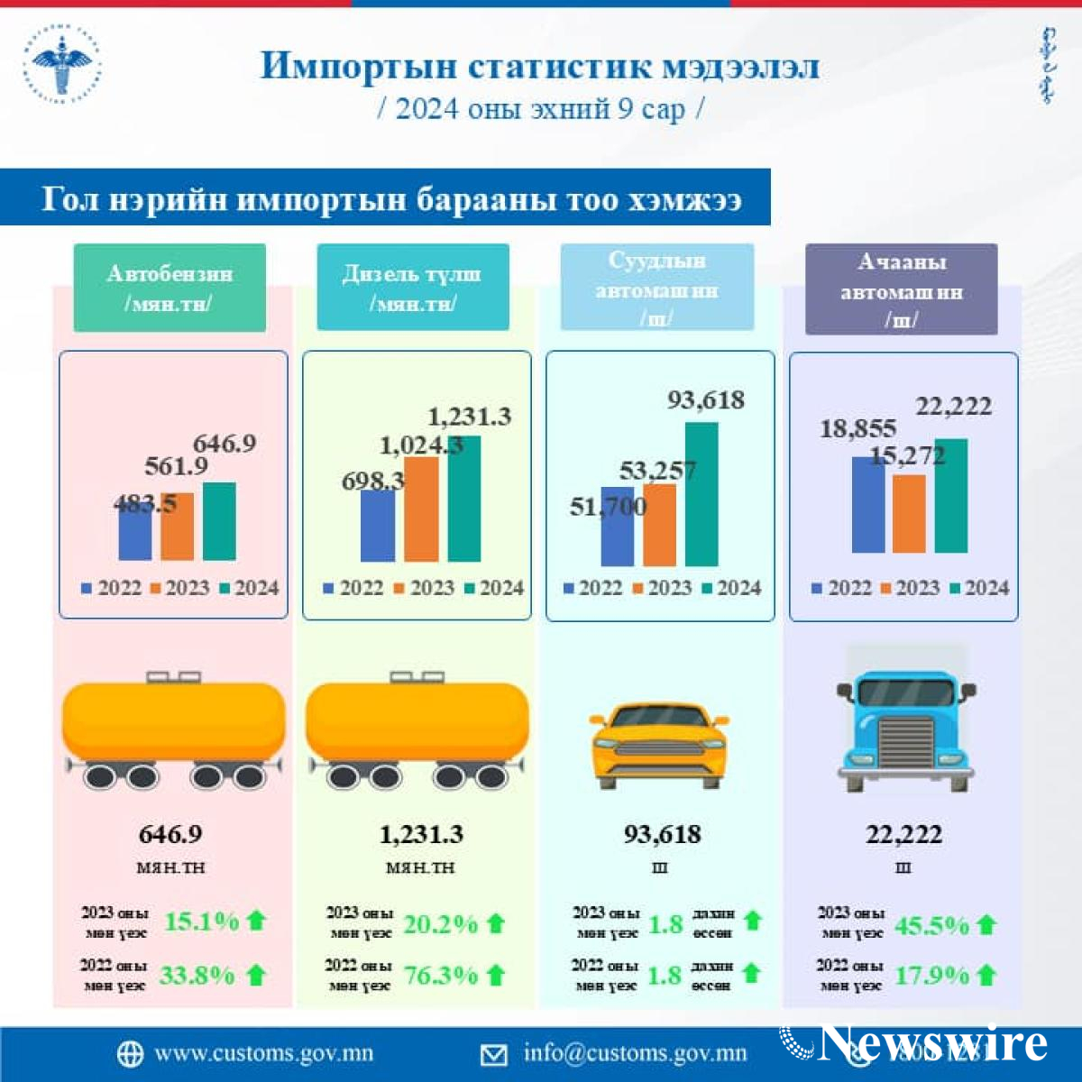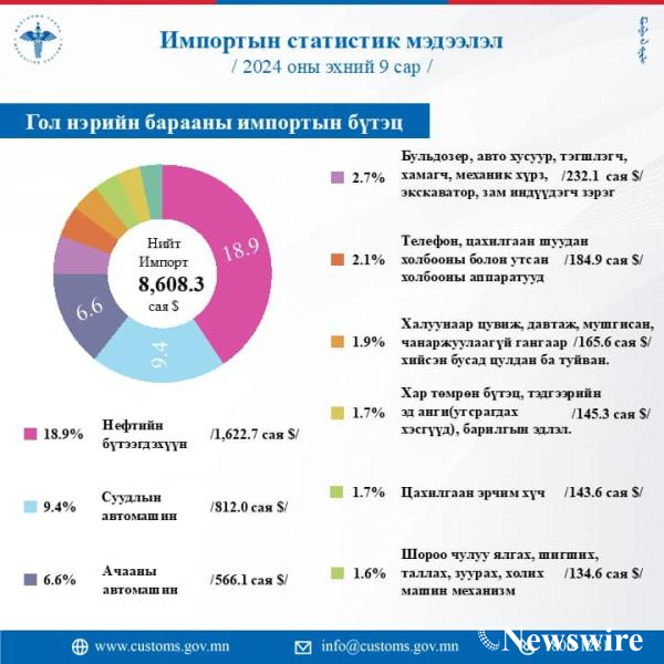 ИМПОРТЫН 2024 ОНЫ ЭХНИЙ 9 САРЫН СТАТИСТИК МЭДЭЭг танилцуулж байна.