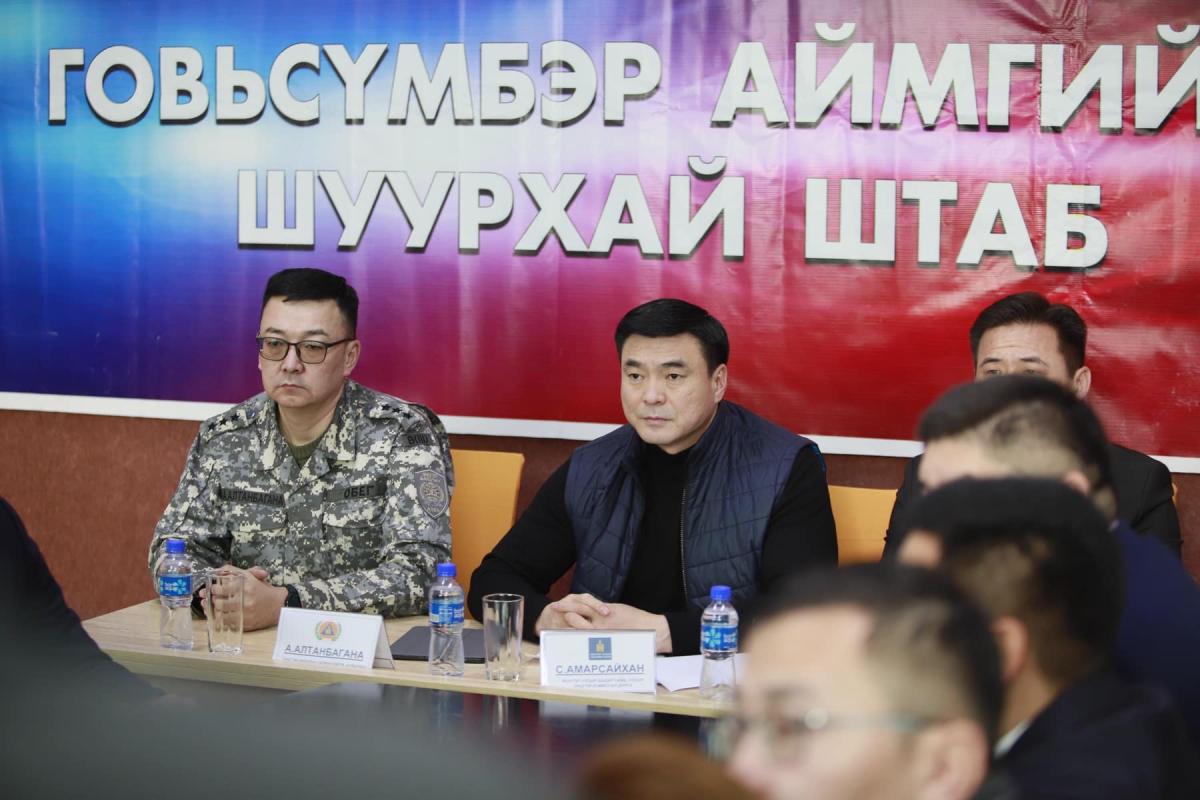 Монгол Улсын Шадар сайд, УОК-ын дарга С.Амарсайхан Говьсүмбэр аймгийн Онцгой комисс, Онцгой байдлын газар болон Шуурхай штабт ажиллаж байна. Энэ үеэр өвөлжилтийн бэлтгэл ажил, отор нүүдлийн нөхцөл байдал, цаг агаарын аюулт болон гамшигт үзэгдлээс урьдчилан сэргийлэх, хариу арга хэмжээг шуурхай зохион байгуулах чиглэлээр орон нутгаас авч хэрэгжүүлэх арга хэмжээний төлөвлөлт, хариу арга хэмжээний зохион байгуулалттай танилцаж, үүрэг чиглэл өглөө.