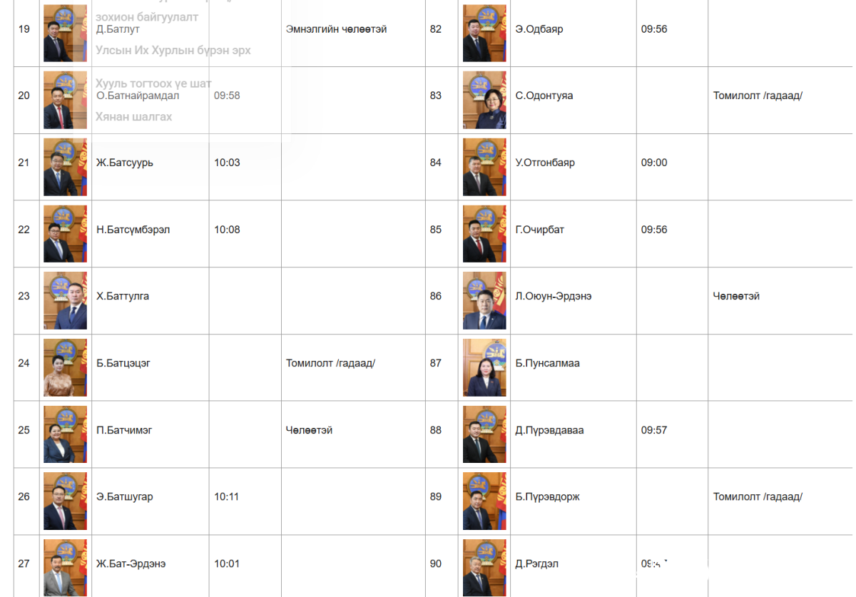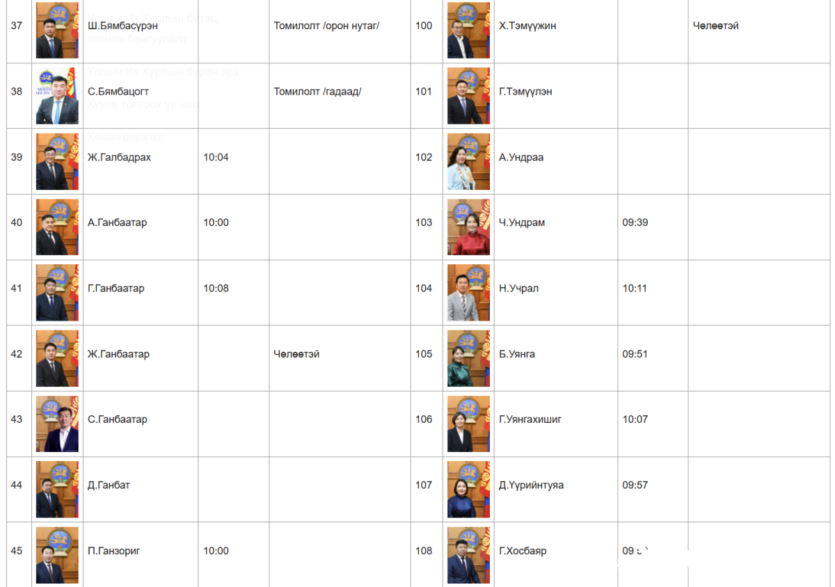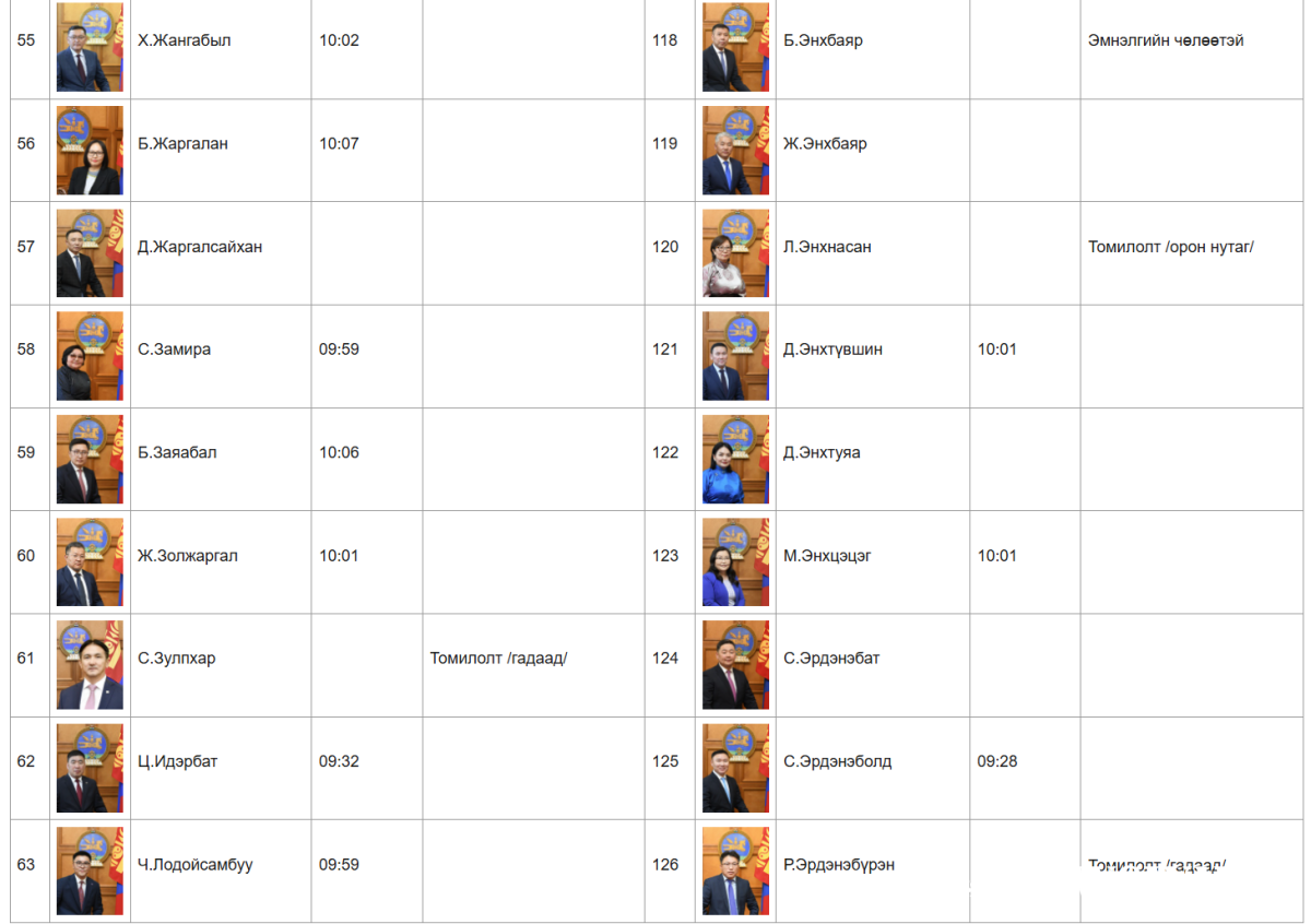 Монгол Улсын Их Хурлын 2024 оны намрын ээлжит чуулганы нэгдсэн хуралдааны 01 дүгээр сарын 16-ны өдрийн ирцийн мэдээ.