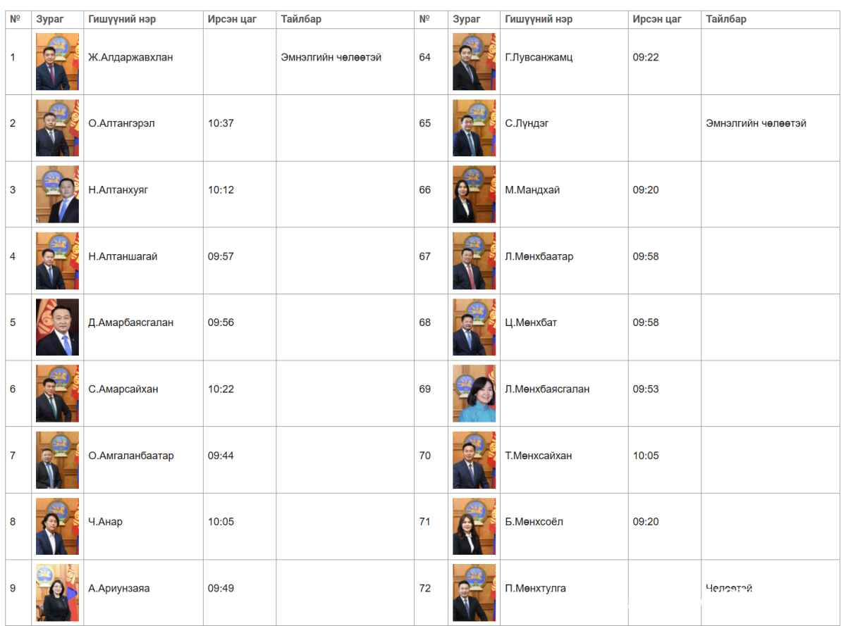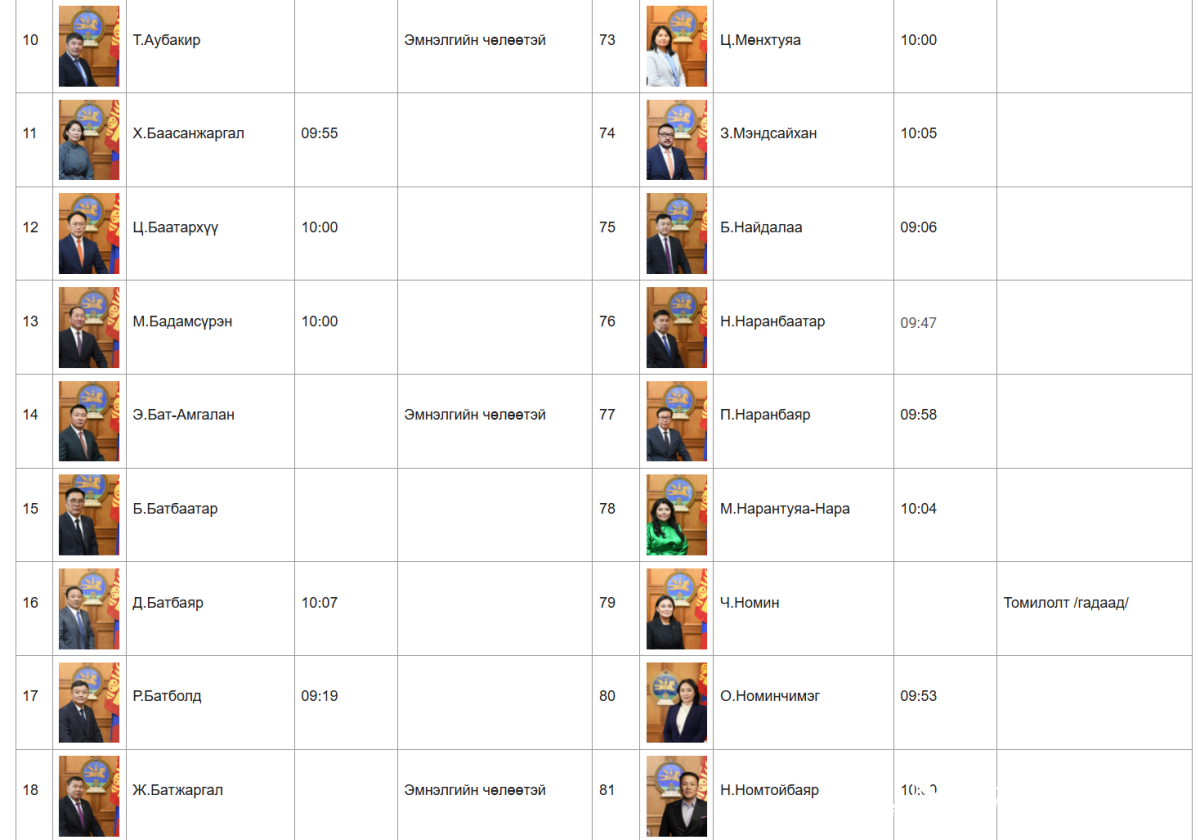Монгол Улсын Их Хурлын 2024 оны намрын ээлжит чуулганы нэгдсэн хуралдааны нэгдүгээр сарын 23-ны өдрийн ирцийн мэдээ.