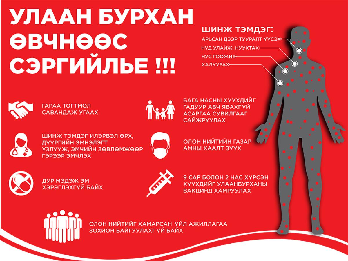Дэлхий дахинд 2025 оны нэгдүгээр сарын байдлаар улаанбурхан өвчний 3,106 тохиолдол бүртгэгдэж, Монголчуудын их зорчдог Тайланд Улсад 103 тохиолдол, БНСУ-д 1 тохиолдол, Вьетнам Улсад 114 тохиолдол тус тус бүртгэгдэж, дэгдэлт болж байгаа тул та бүхнийг гадаад улс оронд зорчихдоо улаанбурхан өвчний эсрэг вакцинд хамрагдахыг зөвлөж байна.