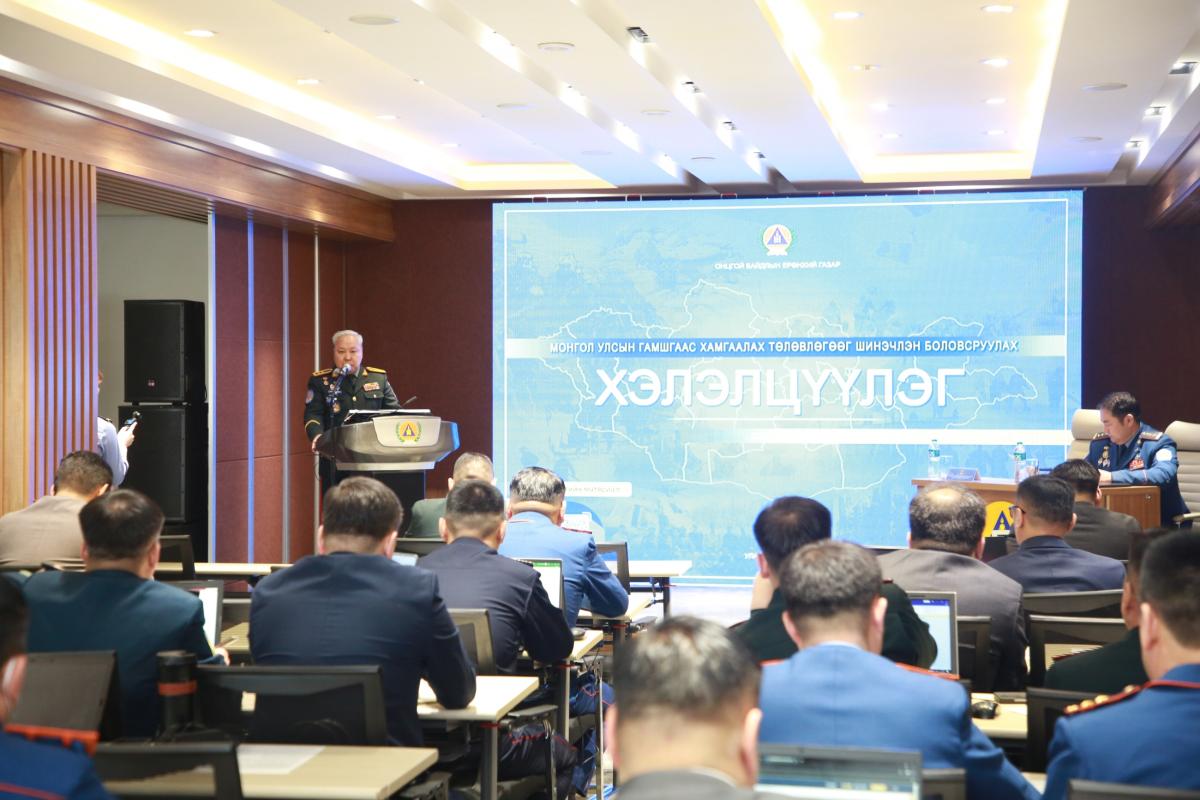 Хошууч генерал Г.Ариунбуян “Дэлхий дахинд гамшгийн тохиолдол сүүлийн 20 жилд эрчимтэй нэмэгдэж байгаа бөгөөд 2021-2030 онуудад гамшгийн тохиолдол өмнөх 10 жилээс 40 орчим хувиар нэмэгдэх магадлалтай гэсэн тооцоог НҮБ-ын Гамшгийн эрсдэлийг бууруулах газраас гаргасан байна. Улс орнуудын туршлагаас харахад гамшгийг сөрөн тэсвэрлэх стратеги бүхэлдээ төрд төвлөрсөн үүрэг, хариуцлага, хүч хэрэгслийг бүс, орон нутагт тэнцвэржүүлэн шилжүүлж, аливаа гамшиг, эрсдэлээс урьдчилан сэргийлэх даван туулахад бүх нийтийн оролцоог нэмэгдүүлэхэд чиглэж байна. Монгол Улсын Засгийн газрын 2015 оны 416 дугаар тогтоолоор “Гамшгийн аюулаас хүн ам, эд хөрөнгө, мал, амьтныг урьдчилан сэргийлэх, аврах, хор уршгийг арилгах, хойшлуулшгүй сэргээн босгох арга хэмжээний төлөвлөгөө”-г баталсан. Цаашид энэхүү төлөвлөгөөг улс орнууд болон манай улсад тохиолдсон гамшиг, ослын сургамж, шинэчлэгдэн батлагдсан хууль, тогтоомж, эрхзүйн барим бичигтэй нийцүүлэн, гамшгаас хамгаалах хүч хэрэгслийн боломжид тулгуурлан шинэчлэн боловсруулах шаардлага үүсээд байна.Тиймээс Онцгой байдлын байгууллагаас дээрх төлөвлөгөөний төслийг 2024 онд шинэчлэн боловсруулж холбогдох яам, агентлаг, байгууллагуудаас саналыг авч нэгтгэсэн. Тус төлөвлөгөөг салбарын онцлог, чиг үүргийг оновчтой тусгах, гамшгийн үед хүч хэрэгслийг үр дүнтэй удирдан зохион байгуулж хохирол багатай даван туулах бодлогын баримт болгон батлуулахад та бүгдийн оролцоо чухал байна” гэлээ.