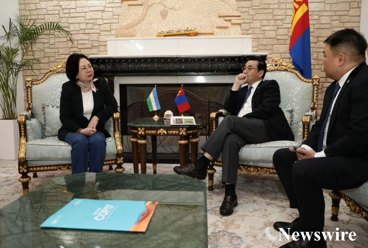 БОУАӨ-ийн сайд С.Одонтуяа өнөөдөр Монгол Улсаас Бүгд Найрамдах Узбекистан Улсад суугаа Элчин сайд Д.Батбаатартай уулзаж Монгол, Узбекистан Улсын байгаль орчны салбарын хамтын ажиллагааг хөгжүүлэх чиглэлээр саналаа солилцсон юм.