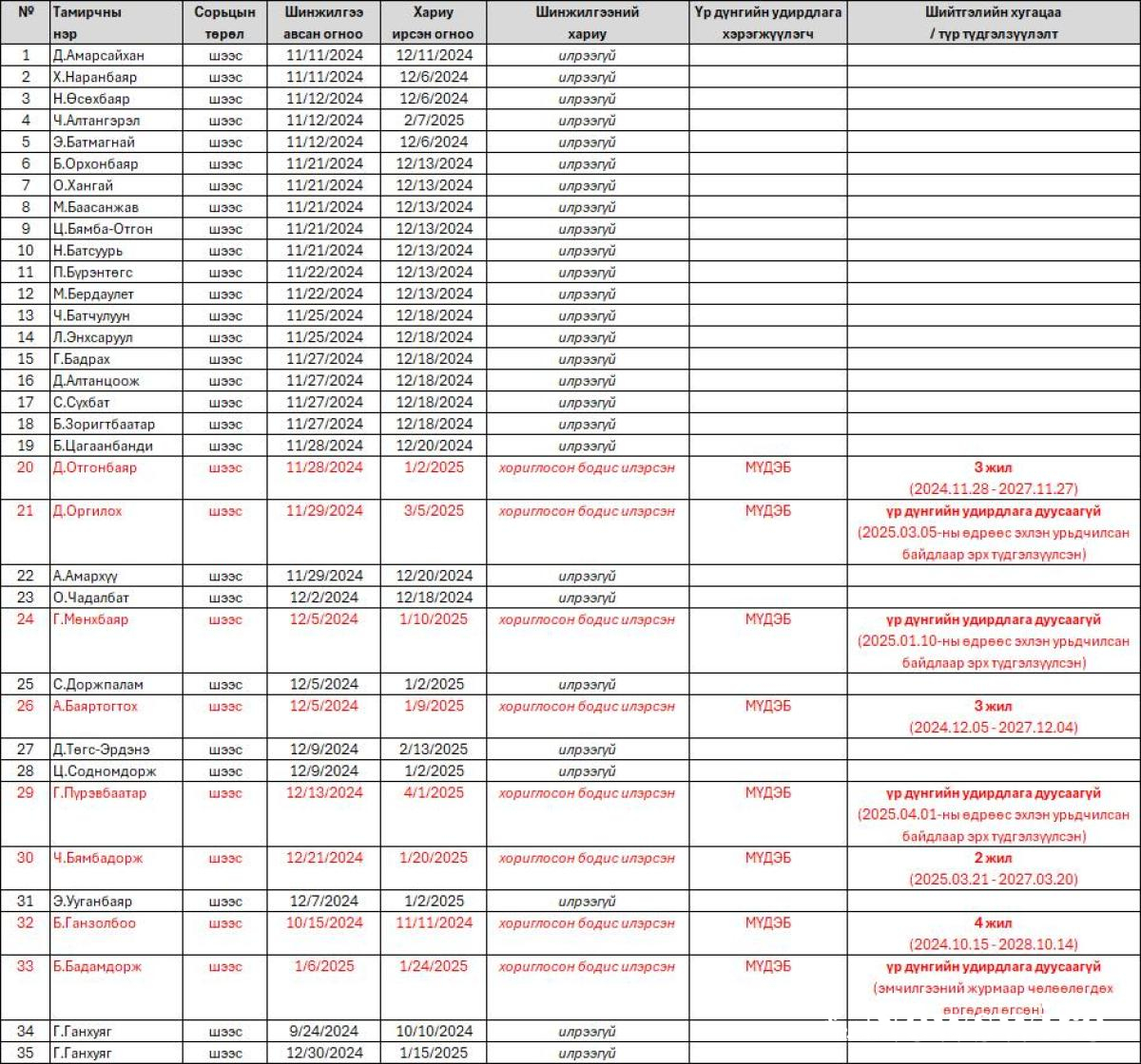 ⁃ Тухайн тамирчинд оноосон шийтгэл болон түр түдгэлзүүлэлт хийсэн талаар