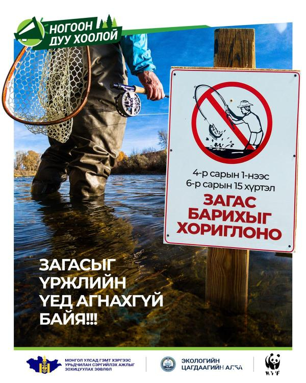 Иймээс иргэд та бүхэн хориглосон хугацаанд загас барихгүй байхыг Экологийн цагдаагийн албанаас анхааруулж байна.